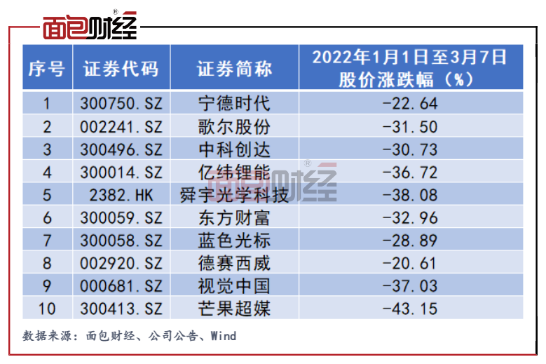 圖3:2022年初至今睿遠價值成長前十大重倉股漲跌幅