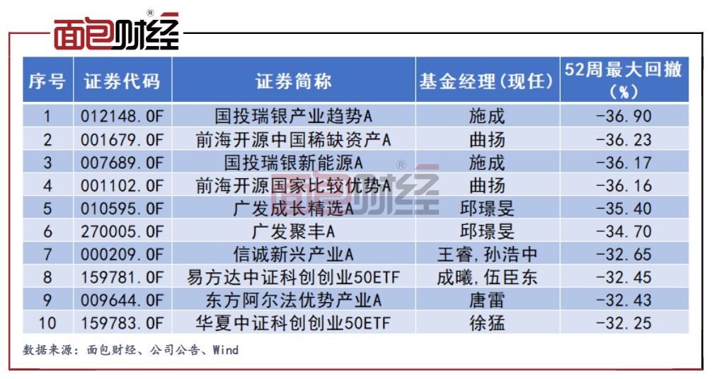 圖4:新能源汽車概念基金50億元凈值以上產品52周回撤排名