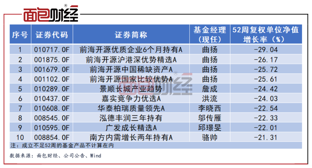 圖5:新能源汽車概念基金50億元凈值以上產品52周復權單位凈值跌幅排名