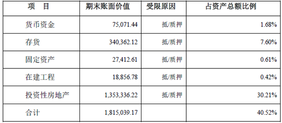 國購投資2017年受限資產情況