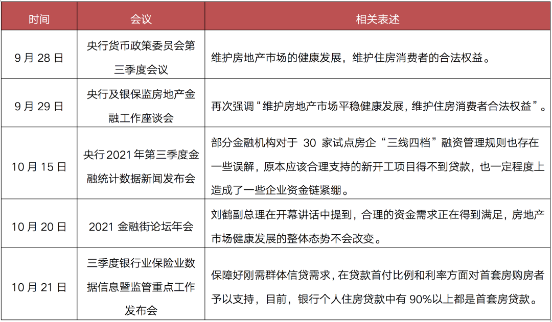 表:9月以來中央關于房地產金融政策表態