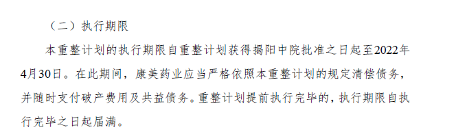 康美藥業的債權人也同樣面臨著這一問題。根據康美藥業重整計劃的規定, 重整計劃的執行期限至2022年4月30日。