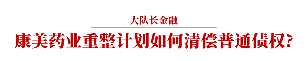 普通債權以債權人為單位, 每家債權人50萬元以下(含50萬元)的債權部分, 由康美藥業在本重整計劃執行期限內以現金方式清償完畢。