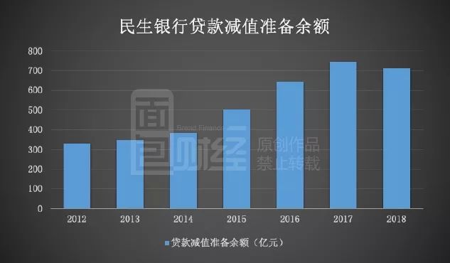 年報顯示,截至2018年底,民生銀行貸款減值準備余額為712.16億元,較上年末下降了33.03億元。