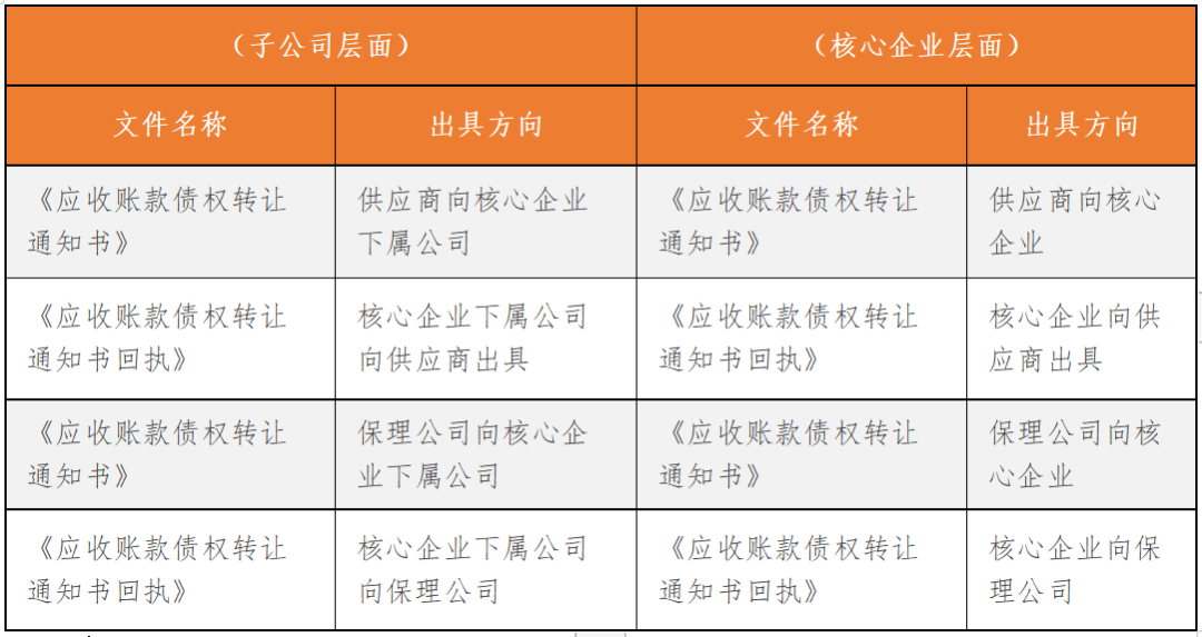 12)債權人、保理公司已將該筆應收賬款債權轉讓予保理公司并最終將由保理公司信托予本信托的事宜向核心企業及其子公司發出書面通知并已取得核心企業及其子公司出具的書面回執;
