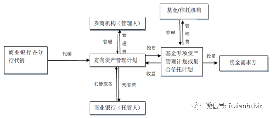 商業銀行理財資金或自有資金委托券商機構成立定向資產管理計劃,投資于應收賬款等具有穩定現金回報收益特征的資產。業務流程如下圖: