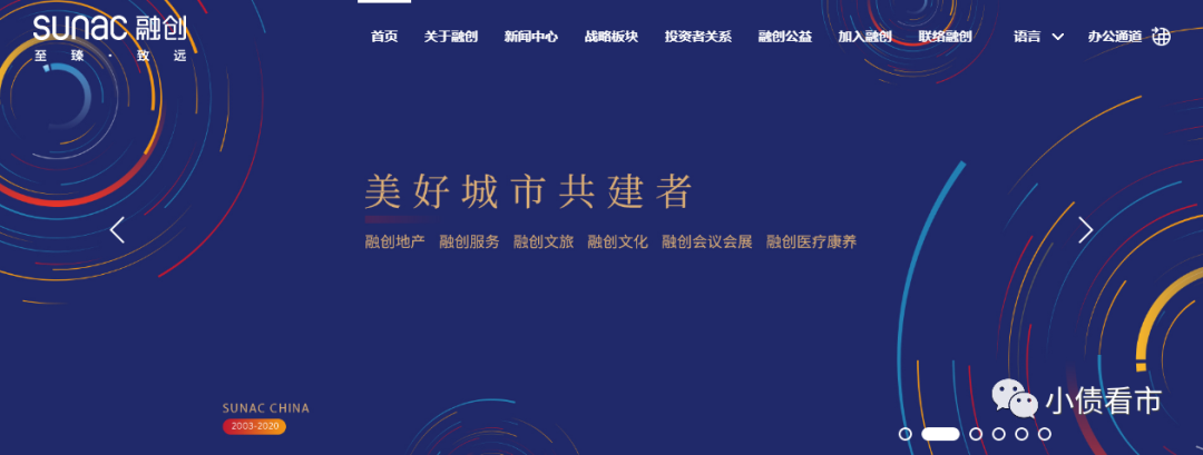 據(jù)官網(wǎng)介紹,融創(chuàng)中國成立于2003年,以地產(chǎn)核心為主業(yè),圍繞“地產(chǎn)+”全面布局,下設地產(chǎn)、服務、文旅、文化、會議會展、醫(yī)療康養(yǎng)等六大戰(zhàn)略板塊。