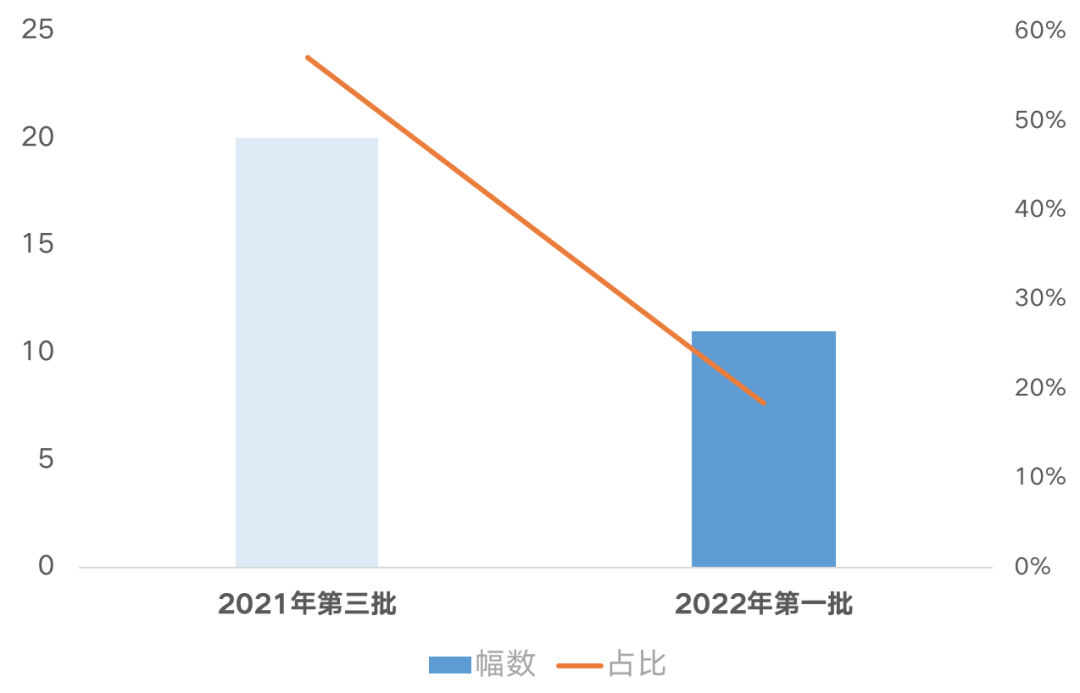 圖:杭州22年首次集中土拍出讓地塊中心城區(qū)地塊占比與21年第三批對(duì)比(按幅數(shù))