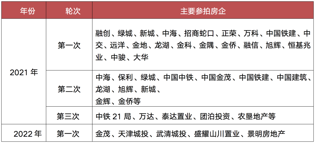 表:天津各輪土拍主要參拍房企