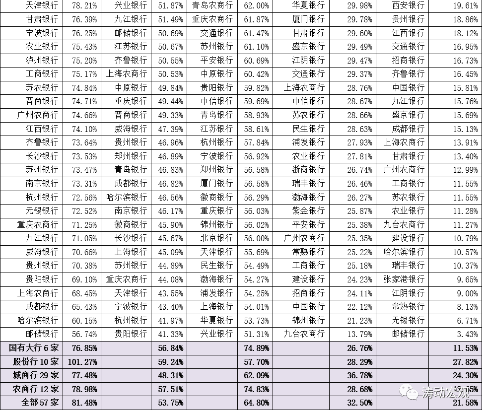 2、上市銀行的貸款占其總資產的比例平均為53.75%,較2020年底的52.39%繼續上升。其中,股份行最高(達到59.24%)、農商行次之(達到57.51%)、城商行低(僅為48.31%)。