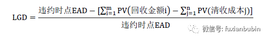 其次是對歷史違約債項(xiàng)樣本的實(shí)際LGD估算,主要是明確表內(nèi)外、展期與借新還舊等的債項(xiàng)分類及處理方法,違約敞口的確定和回收現(xiàn)值的組成,折現(xiàn)率、匯率的確定與處理,直接成本與間接成本的處理。