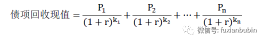 公式中,清收成本現(xiàn)值則是違約債項(xiàng)清收所發(fā)生的直接和間接成本的現(xiàn)值總和。而債項(xiàng)回收現(xiàn)值的計(jì)算,是債項(xiàng)自違約時點(diǎn)起所有屬于該債項(xiàng)的實(shí)際回收現(xiàn)金流在違約時點(diǎn)的現(xiàn)值總和。計(jì)算公式為: