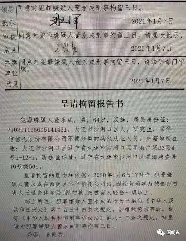 需要注意的是,根據1月7日出示的拘留報告書中顯示的是刑事拘留三日,如今已經超過14天了,不知道中間又發生了什么變化?