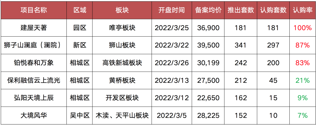 比如剛剛為樓市松綁的蘇州,3月9個(gè)項(xiàng)目推售,開(kāi)盤去化率達(dá)到60%,但單項(xiàng)目最高去化率為100%,最低去化率只有7%。區(qū)域板塊分化行情持續(xù)加劇,核心板塊去化表現(xiàn)最好,園區(qū)更是有兩個(gè)倒掛盤“日光”,其次新城板塊去化率多在60%-80%。相城區(qū)去化堪憂,即便是在8.5-8.8折的基礎(chǔ)上,贈(zèng)送物業(yè)費(fèi)、車位抵用券等,整體去化率仍低至20%。