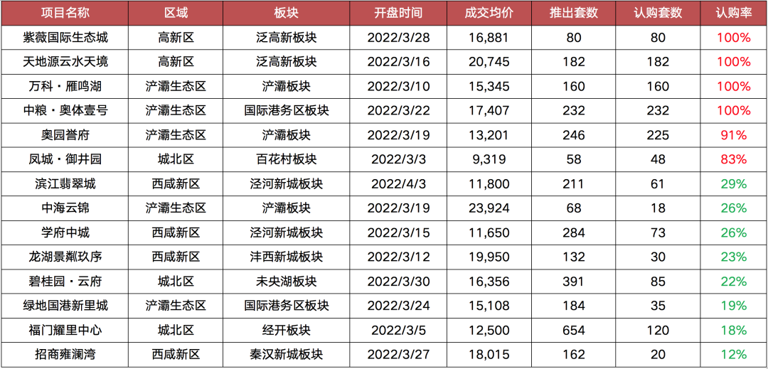 比如西安,受疫情影響,3月有23個(gè)項(xiàng)目首開(kāi)或加推,主城區(qū)熱度顯著高于西咸新區(qū),且兩個(gè)區(qū)域內(nèi)部各項(xiàng)目之間分化差異也非常明顯。