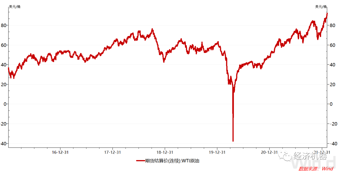 2月3日,以沙特和俄羅斯為首的OPEC+聯盟召開月度產油政策會議,堅持原定計劃在3月增產40萬桶/日。而此前市場預期,OPEC+有可能加速增產。其后原油期貨也突破90元關口。春節期間(2022.1.31-2022.2.4)WTI原油期貨價格漲幅達4.72%,創2015年以來價格新高。