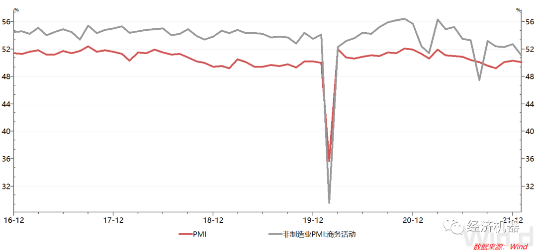 圖3  PMI與非制造業商務活動指數