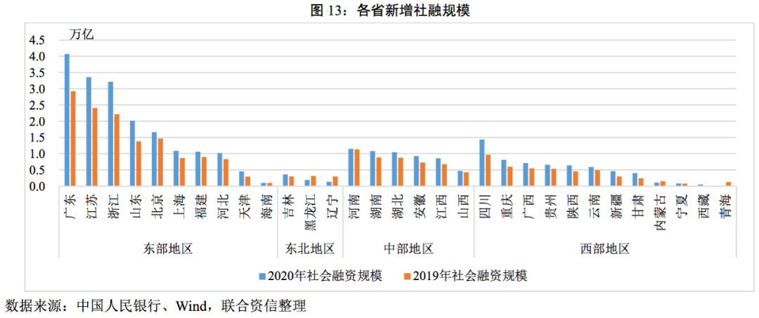 ?流動(dòng)性方面,區(qū)域間分化明顯,GDP規(guī)模較大的省份獲得了更多的流動(dòng)性支持;從社融結(jié)構(gòu)看,東部地區(qū)對(duì)貸款的依賴度相較其他地區(qū)較低,直接融資比重較高;經(jīng)濟(jì)規(guī)模較小的省份,如青海、東三省,政府債券融資占比較高。