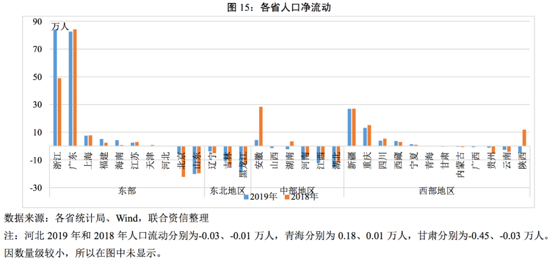1、人口:東部及西部地區(qū)繼續(xù)呈現(xiàn)凈流入
