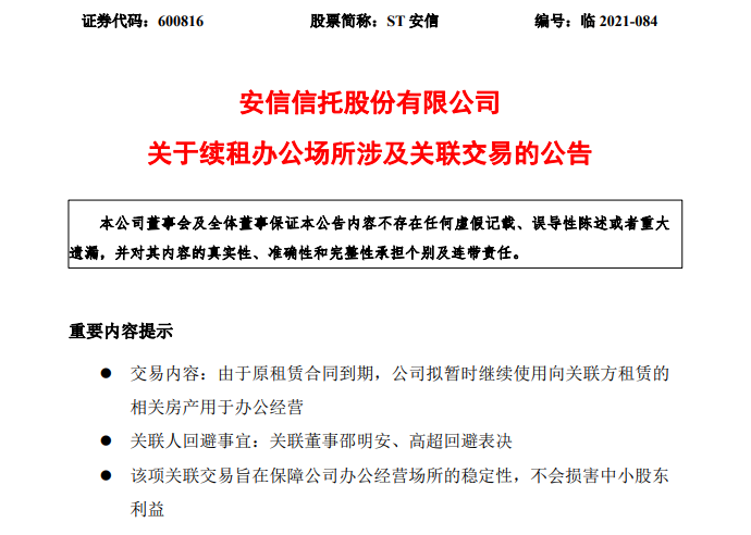 繼續租賃,那說明安信信托不至于在短期走向破產清算的命運;但是如果租賃期限不超過一年的話,又該如何做解釋?