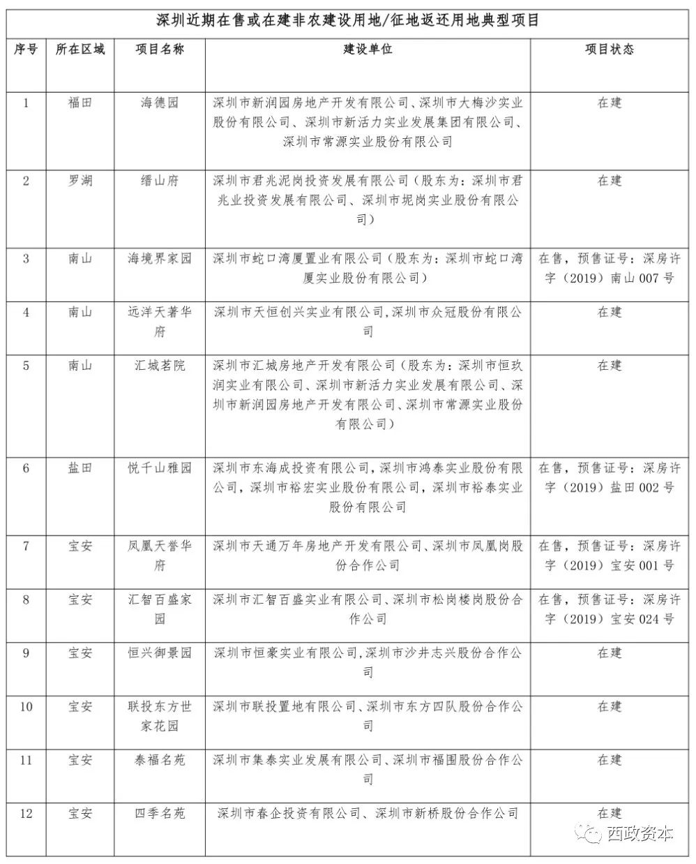 近年來,深圳通過非農建設用地/征地返還用地自主開發及合作開發的項目不斷上市預售和開工建設(詳見附表:深圳近期在售或在建非農建設用地/征地返還用地典型項目),土地市場逐漸出現了 “非農/征返地合作開發熱”。伴隨這股熱潮,類似南山區中山公園旁征返地合作開發項目、寶安區松崗街道樓崗公園旁非農建設用地合作開發項目等非農/征返地合作開發類“網紅”項目也一再出現到開發商投資部門的預判中。