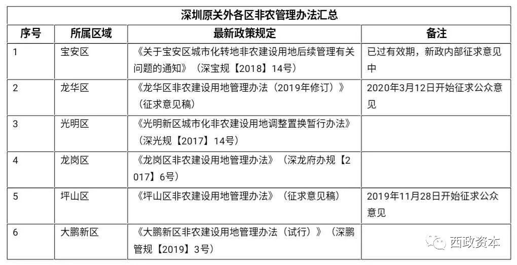 需要說明的是,在深圳原關內(福田、羅湖、鹽田、南山),存在一種特殊的“關內的非農建設用地”,主要是原特區內在上個世紀80年代劃給農村集體股份公司的用地紅線,政策依據主要是《關于進一步加強深圳特區內農村規劃工作的通知》(深府辦[1986]411號)等。