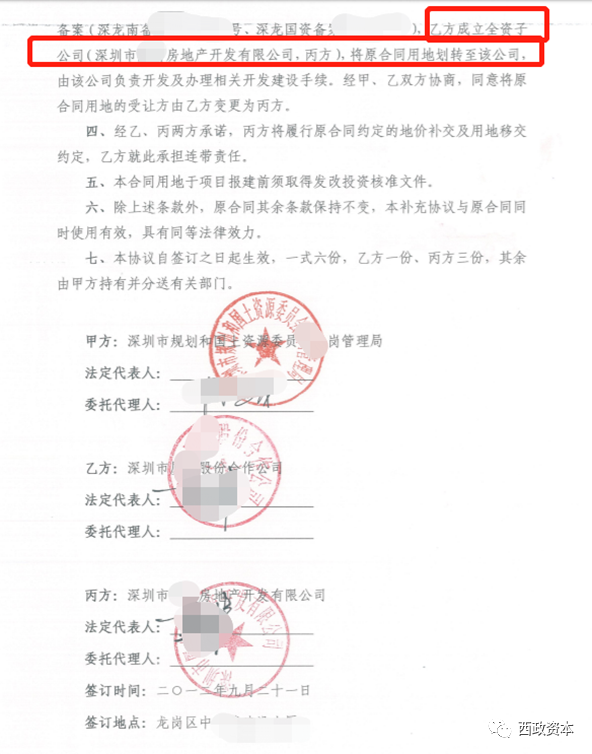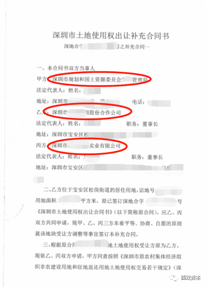第一,補充協議簽訂主體為:國土部門VS股份合作公司 VS 開發商項目公司;