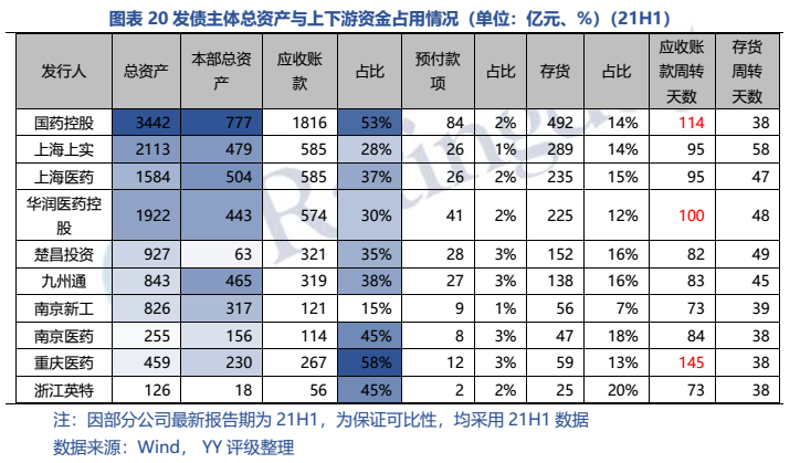4)南京醫藥、南京新工本部、楚昌投資本部有一定短債壓力,現金/短債在25%以下;長期償債能力上,九州通、南京醫藥、南京新工和浙江英特較弱,總債務/ebitda在9倍以上。