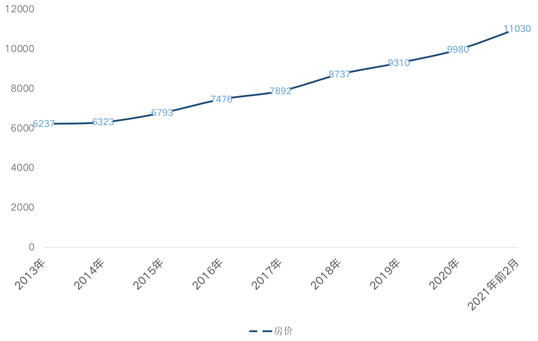 圖:2013年-2021年前2月全國房價均價走勢