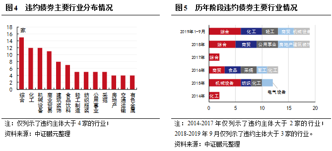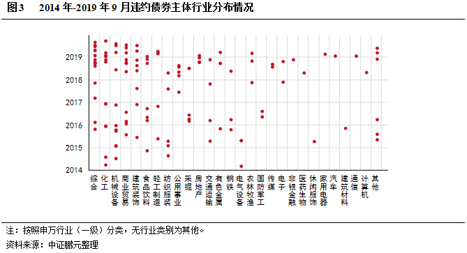 2、違約債券的行業(yè)特征從集中到分散,較多發(fā)生在綜合、化工、機械設備、商業(yè)貿易等行業(yè)