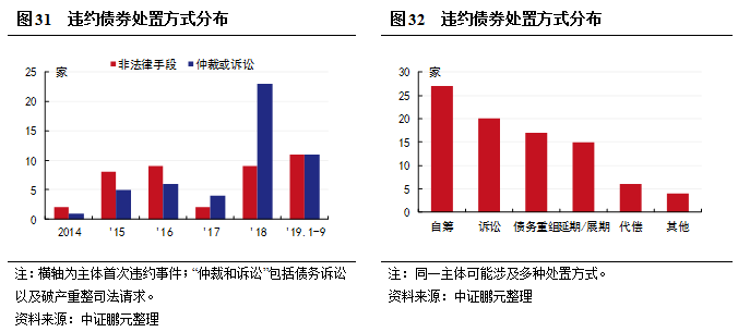 通常而言,主體違約后,一般首先以自主協(xié)商的方式進行后續(xù)處理,在無法獲得資金、與債務人達成償債協(xié)議時,才會采用司法途徑。但從實際經驗來看,根據違約實體的具體情況,違約債券的處置手段不同。