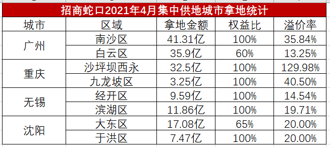 然而3-4月,招商蛇口居然連拿了三塊溢價(jià)率超過(guò)100%的地塊: