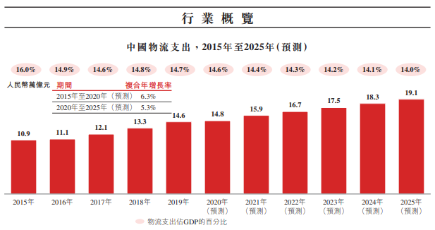 2020年~2025年一體化供應鏈物流支出增長率占比圖