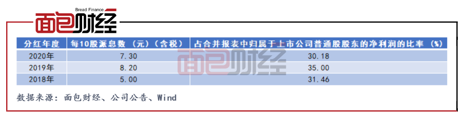 公司2020年分紅比率也有所下降。2020年,公司擬以實施權(quán)益分派股權(quán)登記日總股本為基數(shù),每10 股派發(fā)現(xiàn)金紅利7.30 元(含稅),分紅比例為30.18%,較2019年下滑4.82個百分點。根據(jù)保利發(fā)展新發(fā)布的《2021-2023年股東回報規(guī)劃》,公司未來三年(即2021-2023 年)分紅率下調(diào)為不低于25%,而2015 年-2020 年,公司分紅比例均維持在30%以上。