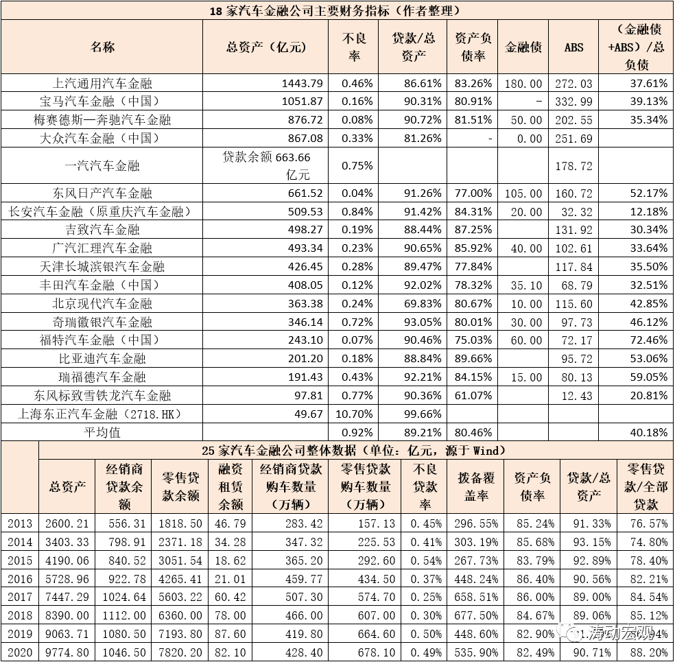 一、25家汽車金融公司基本情況