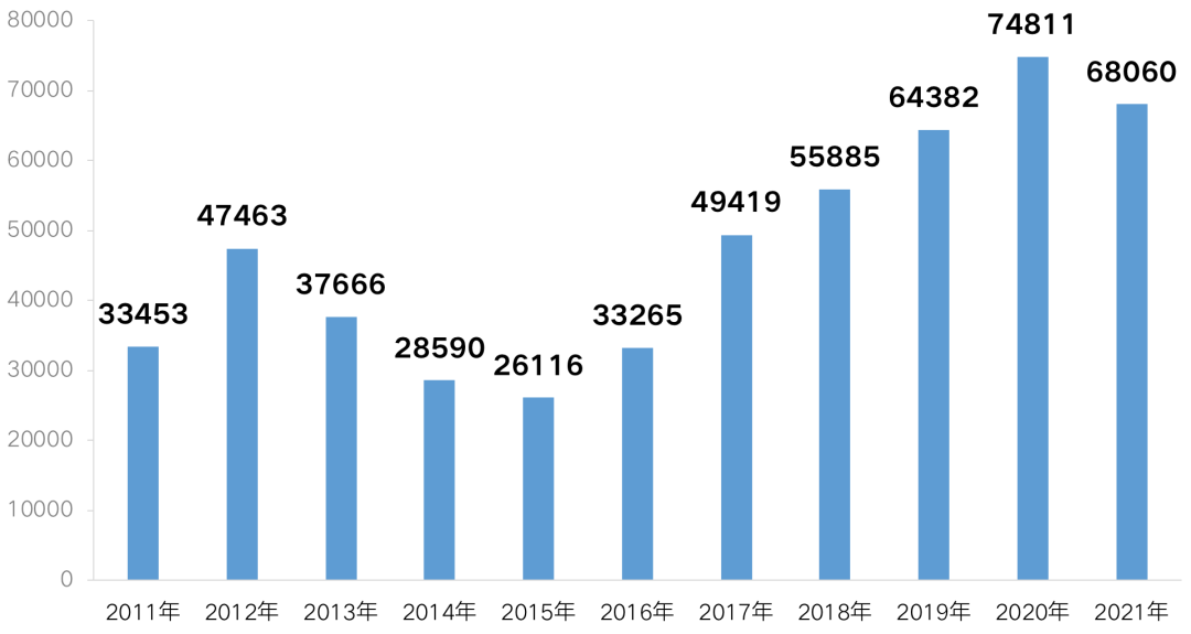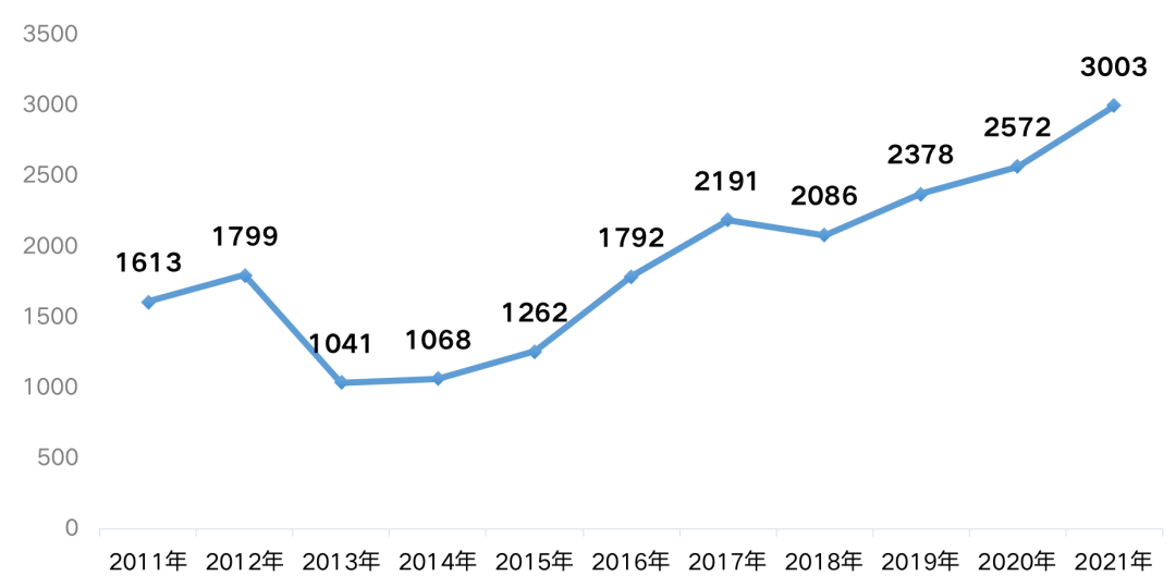 圖:2011年-2021年全國(guó)300城