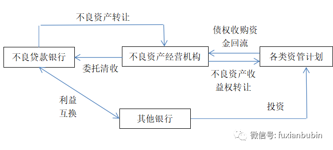 早期,銀行將不良資產(chǎn)打包給不良資產(chǎn)經(jīng)營機(jī)構(gòu),并承諾未來回購出讓的不良資產(chǎn),對(duì)于銀行而言,能夠在當(dāng)期實(shí)現(xiàn)資產(chǎn)出表,但因?yàn)榛刭弲f(xié)議的存在,根據(jù)《企業(yè)會(huì)計(jì)準(zhǔn)則第23號(hào)——金融資產(chǎn)轉(zhuǎn)移》,銀行不應(yīng)終止確認(rèn)已出售的不良資產(chǎn),根據(jù)中國銀監(jiān)會(huì)關(guān)于規(guī)范信貸資產(chǎn)轉(zhuǎn)讓及信貸資產(chǎn)類理財(cái)業(yè)務(wù)有關(guān)事項(xiàng)的通知(銀監(jiān)發(fā)[2009]113號(hào))、《關(guān)于進(jìn)一步規(guī)范銀行業(yè)金融機(jī)構(gòu)信貸資產(chǎn)轉(zhuǎn)讓業(yè)務(wù)的通知》(銀監(jiān)發(fā)[2010]102號(hào))、《中國銀監(jiān)會(huì)辦公廳關(guān)于規(guī)范金融資產(chǎn)管理公司不良資產(chǎn)收購業(yè)務(wù)的通知》(銀監(jiān)辦發(fā)[2016]56號(hào))規(guī)定,銀行已無法再借道不良資產(chǎn)經(jīng)營機(jī)構(gòu)實(shí)現(xiàn)當(dāng)期出表,但在后續(xù)出現(xiàn)了不少該業(yè)務(wù)模式變種如下圖: