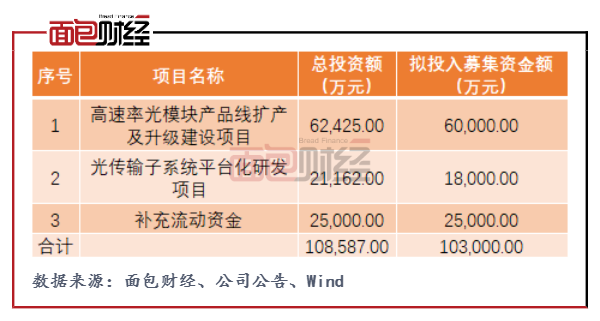 高速率光模塊產(chǎn)品線擴(kuò)產(chǎn)及升級建設(shè)項目擬投入募集資金6億元,是此次募投的主要項目。該目建成后,可形成新增高速率光收發(fā)模塊年產(chǎn)110萬支的生產(chǎn)能力,較2020年公司光收發(fā)模塊產(chǎn)量增長逾75%,建設(shè)周期為2年。
