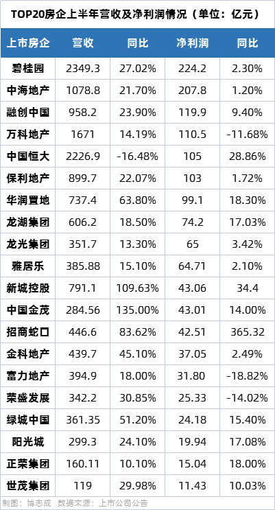 由上圖可見,大部分TOP20房企上半年營收增幅遠大于凈利潤增幅,毛利率在下降,房企的盈利能力普遍下滑。