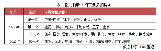 與去年三輪集中土拍大部分地塊被本土國(guó)企托底不同,由于本輪土拍島內(nèi)優(yōu)質(zhì)地塊較多,外來(lái)品牌房企的參與度明顯提升,保利、招商、中海、金地、華潤(rùn)、中交、華僑城等多家品牌房企均有參拍,并且金地和中海在思明區(qū)和集美區(qū)還分別搖得一子。